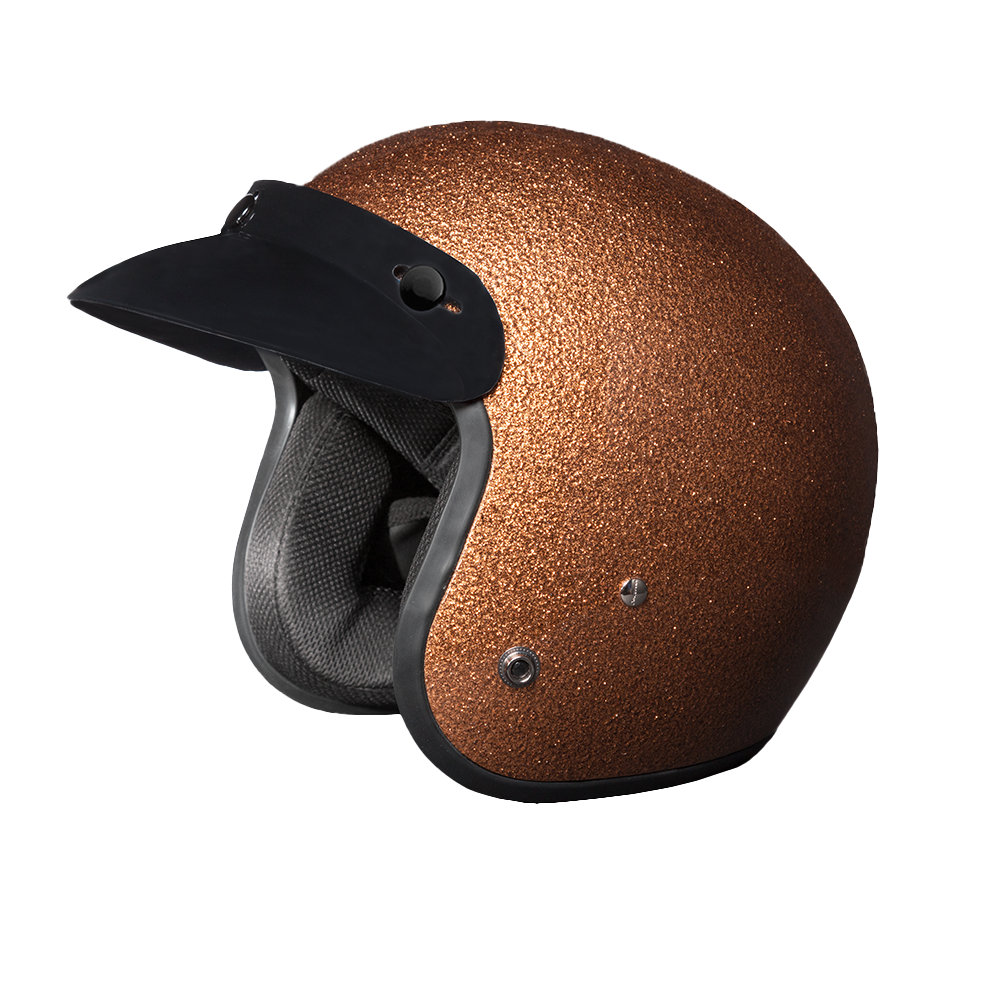 Our D.O.T. Daytona Cruiser 3/4 Shell Helmet In The Root Beer Metal Flake, Meets And Exceeds D.O.T. FMVSS 218 Standards And Is The Smallest D.O.T. 3/4 Shell Helmet Ever Made!! With 3 Different Shell Sizes, You're Sure To Get That Proportionate Fit!! Available Only With Removable, Snap On Gloss Black Bubble Visor. Many More Colors And Designs Available Such As Soft Touch Dull Black, Hi-Gloss Black And Hi-Gloss White; Custom Colors: Gun Metal Grey Metallic; Specialty Items: Graphics. Head Wrap And Cloth Draw String Bag Included. Sizes Range From XS-2XL.