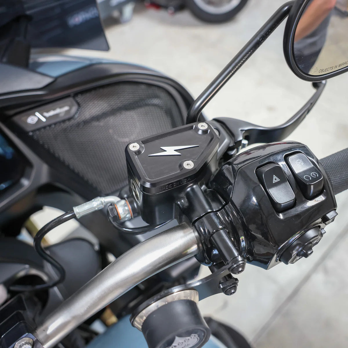 Fits 2024+ Touring Model Front Brake Reservoir Caps. (2024+ Road Glide: FLTRX / FLTRXSE / FLTRXSTSE & 2024+ Street Glide: FLHX / FLHXSE)