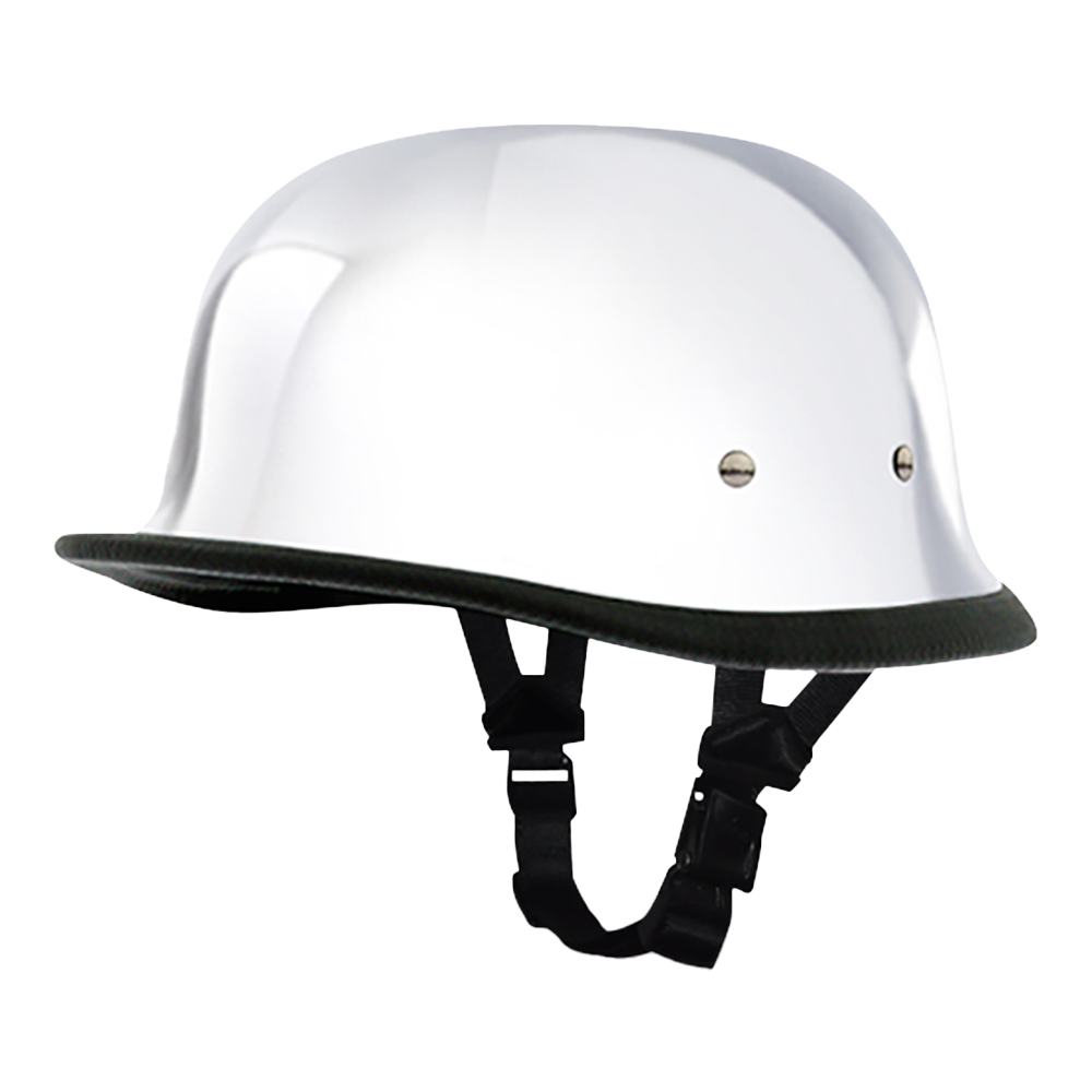 Our Premium Classic German Novelty Item In Chrome Does Not Meet D.O.T. Standards. The German Novelty Item In Chrome Is Fully Lined With A Custom Formed Interior For X-treme Comfort. Our Finish Is The Real Thing!! Virtually Scratch Resistant With A Mirror Like Finish. Head Wrap And Cloth Draw String Bag Included.